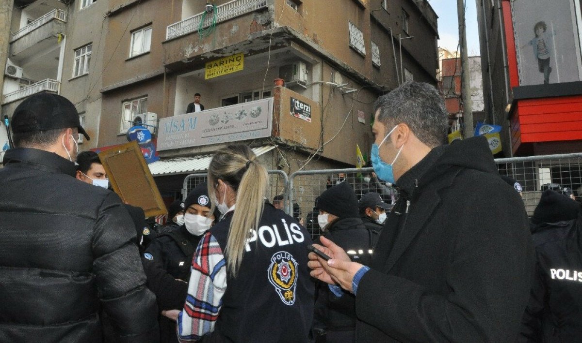 Bu sırada parti önünde toplanan bir grup HDP’li, yüksek sesle müzik dinleyip annelerin sesini bastırmak istedi.