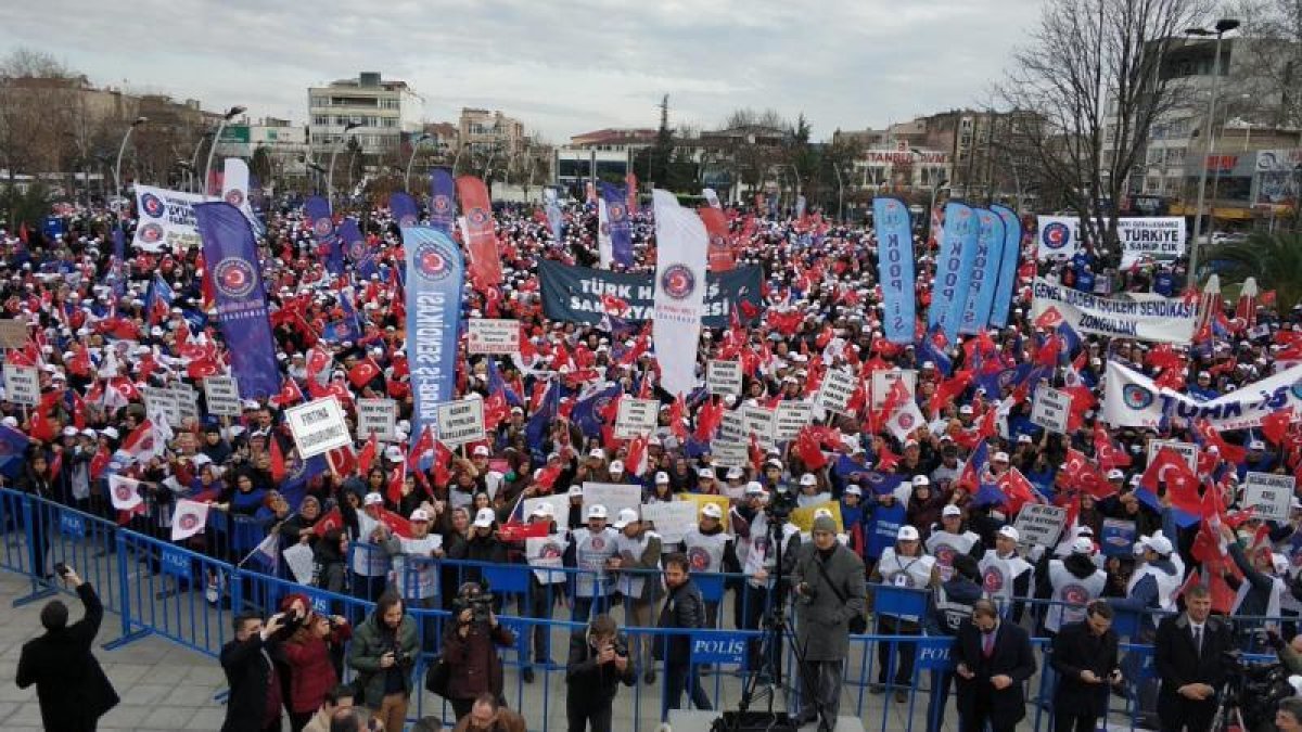 Yapacakları mitingle Hükümet’i uyaran işçilerin eylemi saat 13.00’te Adapazarı Bosna Caddesi’nden başladı. Buradan Demokrasi Meydanına yüründü. Saat 14.00’te Gar Meydanında başlayan mitingde Türk-İş Genel Başkanı Ergün Atalay açıklama yaptı.