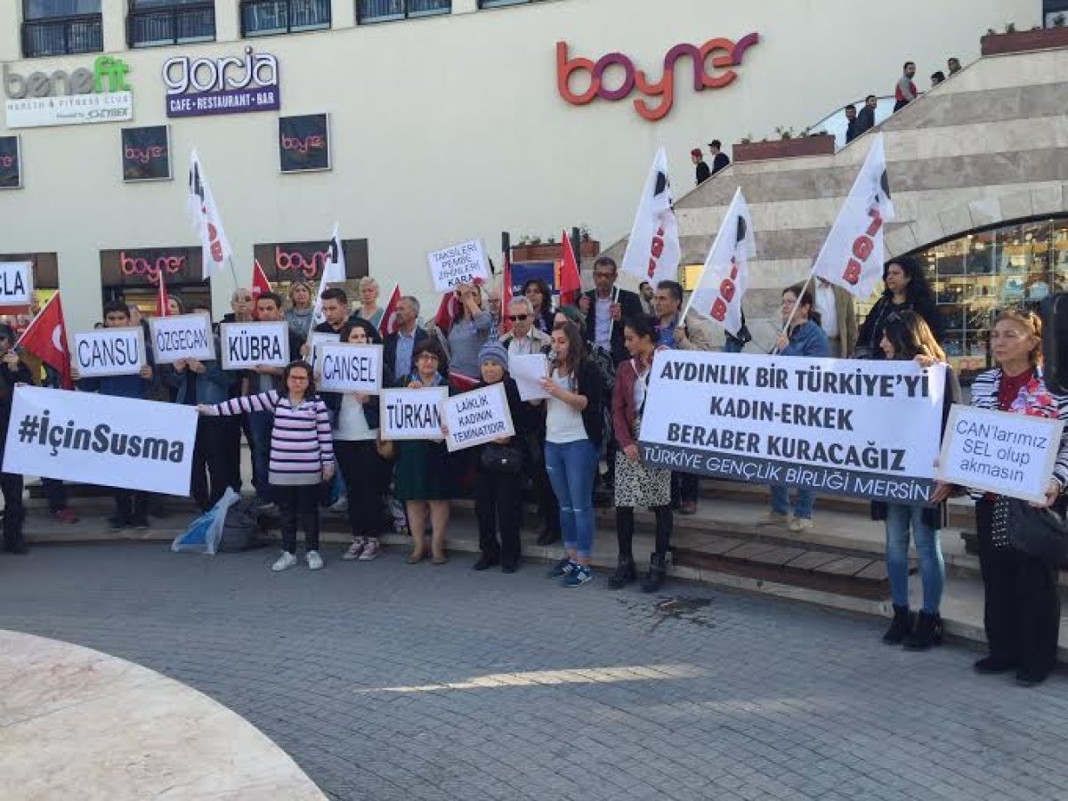 TGB Mersin, Forum havuz başında buluşup 8 Mart Dünya Emekçi Kadınlar günü basın açıklaması düzenledi. Düzenlenen basın açıklamasında sık sık “Karanlığa geçit yok Aydınlık Türkiye”,”Laiklik yoksa Hayat da yok”,”Kadın Erkek el ele mücadeleye” sloganlari atıldı.  TGB Mersin İl Başkanı Gülşah Tireng tarafından yapılan basın açıklamasının tam metni :