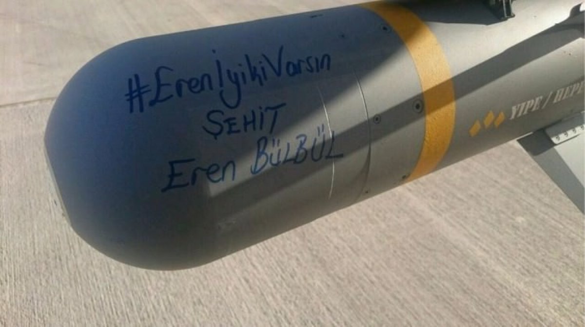 Terör operasyonunda kullanılan mühimmata ait fotoğraflar, sosyal medyada paylaşım rekoru kırdı. Bombaların üzerinde, “İyiki Varsın Eren Bülbül” yazdığı görüldü.