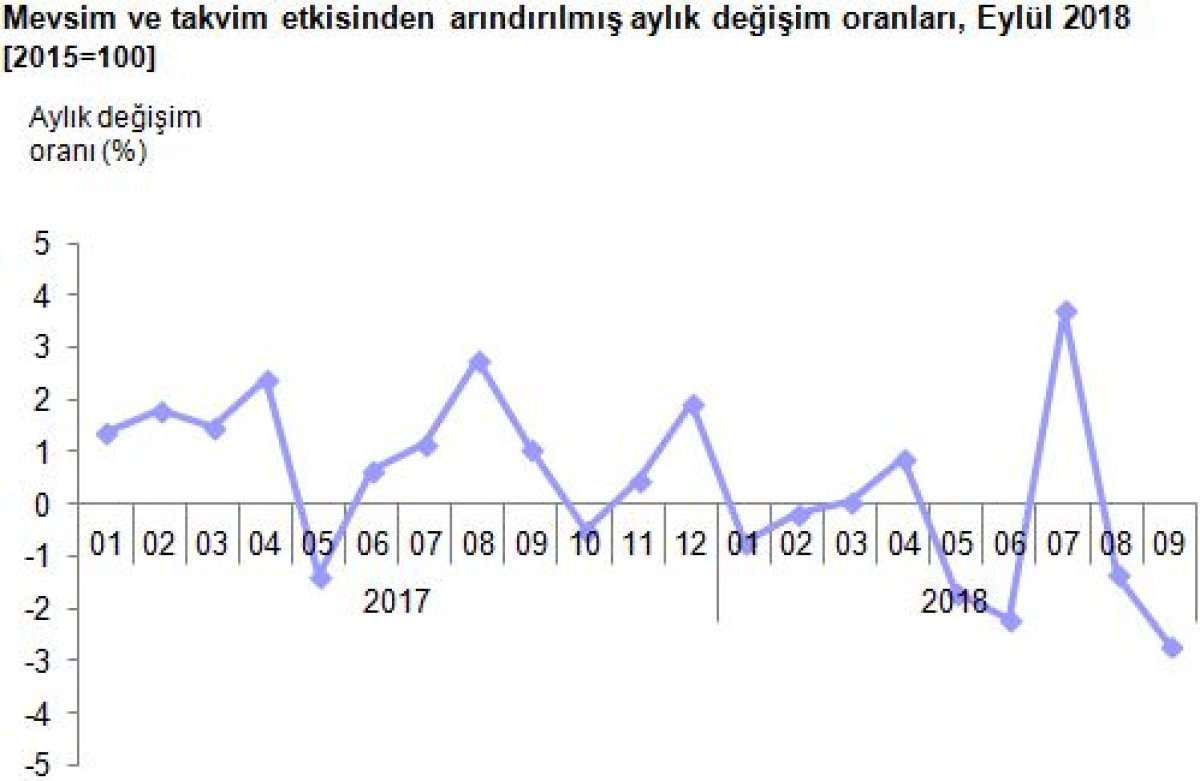 2018 yılı üçüncü çeyreğinde takvim etkisinden arındırılmış sanayi üretimi bir önceki yılın aynı çeyreğine göre %1,5 arttı. Bir önceki çeyreğe göre mevsim ve takvim etkilerinden arındırılmış sanayi üretimi ise %0,2 azaldı.