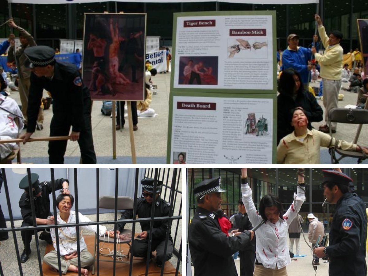 Fotoğraf, bir spiritüel öğreti olan Falun Gong (Falun Dafa olarak da bilinir) takipçilerinin 24-26 Mayıs 2004 tarihlerinde Chicago’nun Federal Plaza meydanında düzenlediği bir gösteriden.
