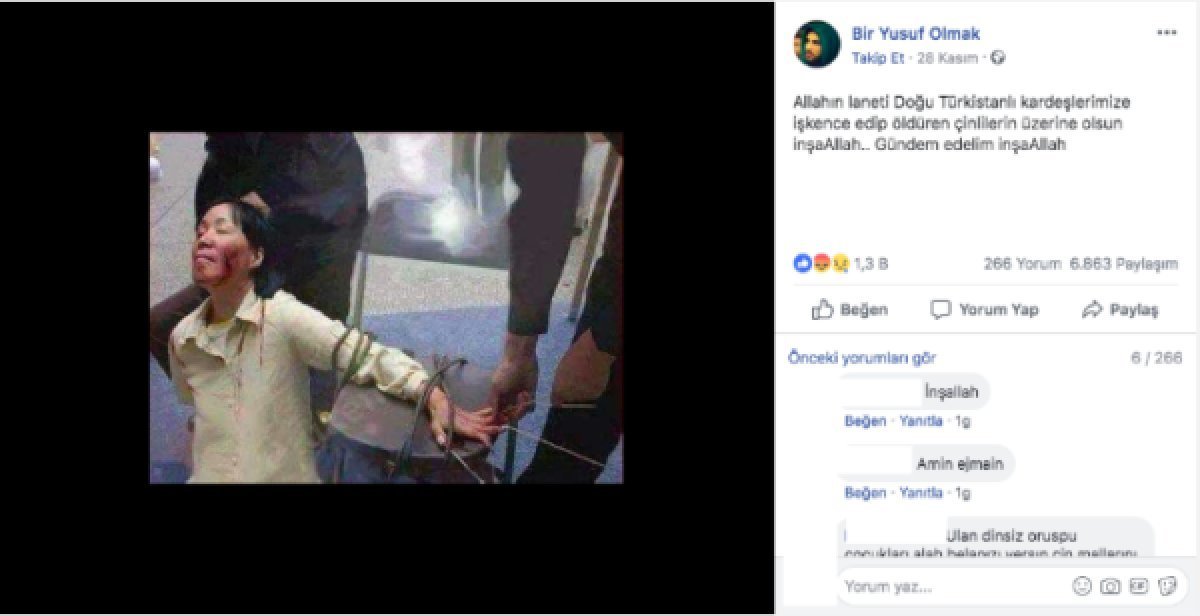 Sosyal medyada paylaşılan ve teyit.org’a ihbar olarak gönderilen bir fotoğrafın Çinliler tarafından işkence edilen bir Doğu Türkistanlıyı gösterdiği iddia edildi.