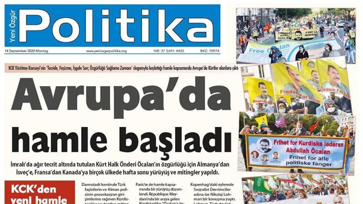 PKK’nın yayın organı Yeni Özgür Politika’da “Türkiye batmadan Erdoğan’ı yıkalım” başlıklı Veysi Sarısözen imzalı yazı yayımlandı. Türkiye’nin Yunanistan ile olası bir savaşta birkaç hafta sonra teslim bayrağını çekmek zorunda kalacağını savunan Sarısözen “NATO tepesine çöker, Fransız donanması limanlarına girer, Yunan tankları İstanbul önlerinde homurdanır” ifadelerini kullandı. Sarısözen PKK’nın eylem planına sahip çıkarak “Ve Türkiye ‘batmadan’, KCK’nin 12 Eylül hamlesinde dile getirilen faşist rejimi devirmek için her yerde harekete geçelim. İçinden çürümüş bu rejim, vurursak devrilecektir” diye yazdı.