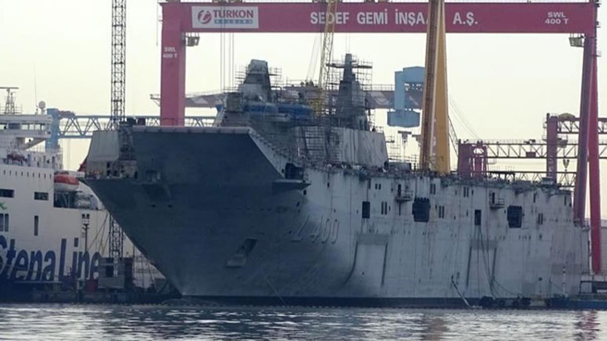 TCG Anadolu’nun özellikleri ve silah kapasitesi tek tek belirtildi. ATAK helikopterinin uçak gemisinde yer alacağı da vurgulandı. Haberde TCG Anadolu’nun Sedef tersanesindeki görüntülerine yer verildi.